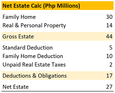 Say your unmarried Filipino uncle has a family home of 30M and other property worth 14M.